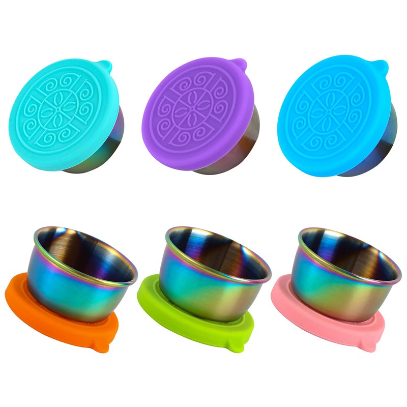 - FOOD-GRADE MATERIAL - Our condiment containers are made of high quality 18/8 Stainless Steel, food-grade silicone, BPA free, non-toxic, no chemical odor. Easy to clean and dishwasher safe. Reusable stainless steel condiment containers replace the disposable, a perfect environmental solution to reduce the waste.