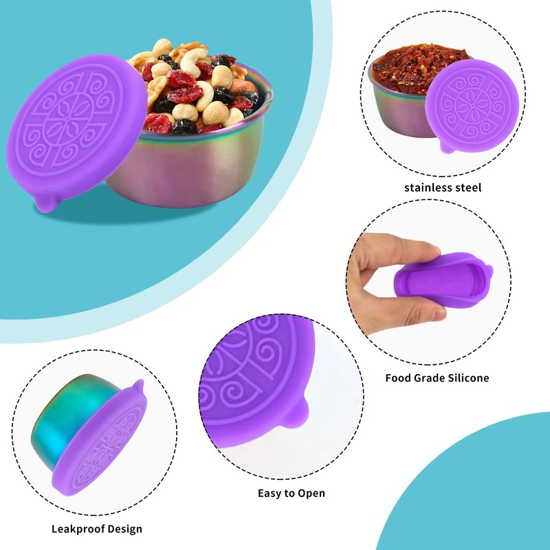 - LEAK-PROOF DESIGN - The Condiment Containers provide an airtight and secure seal to lock in freshness. The soft silicone lid with small protruding prongs makes it easy to open. Mess-free, spill-free.