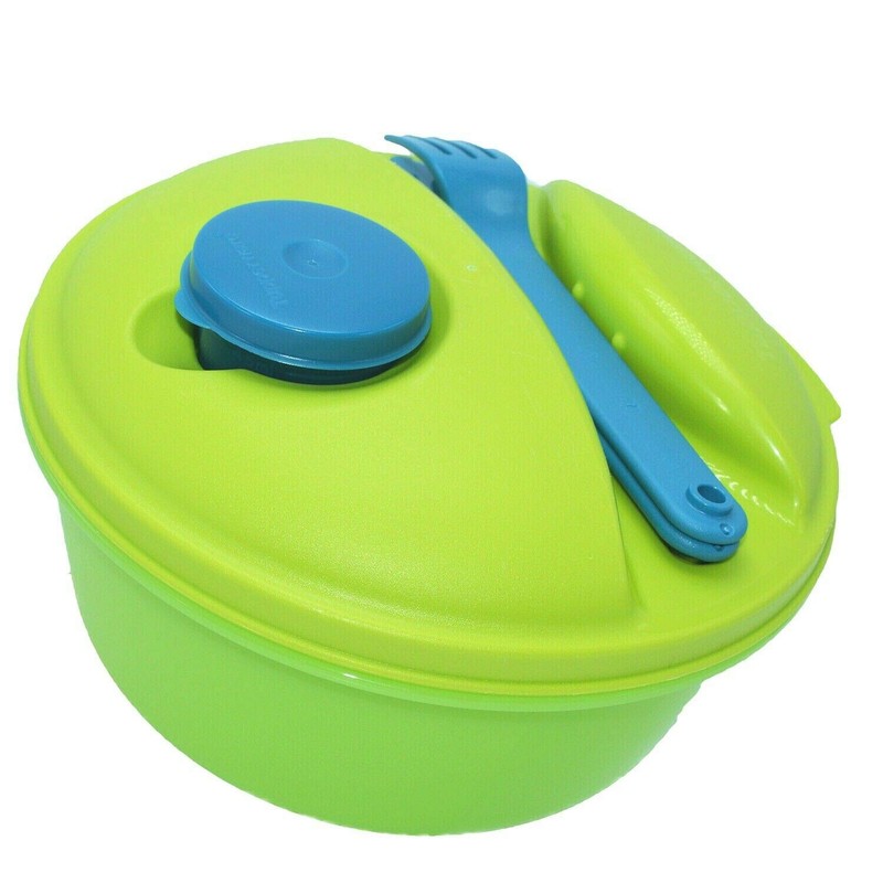 - Includes 6 1/3 cup/1.5 L bowl, seal, 2-oz/60 mL, Tupper Mini container, snap-together fork & knife
