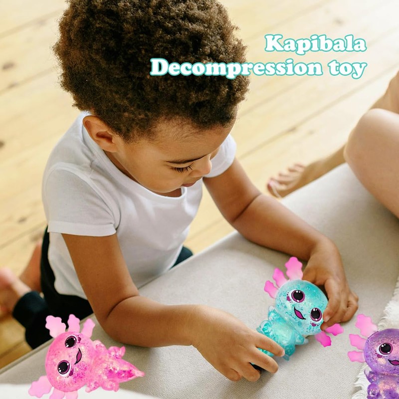 - 3 cute salamander toys: We used a fish design that children love very much, and three stress relieving toys are pink, purple, and blue, with particularly interesting expressions
