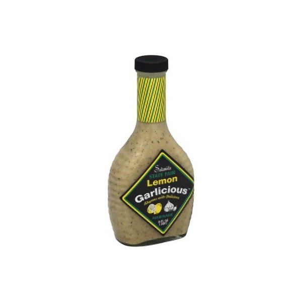 - 12 16oz plastic bottles of Salamida's State Fair Line Lemon Garlicious Sauce