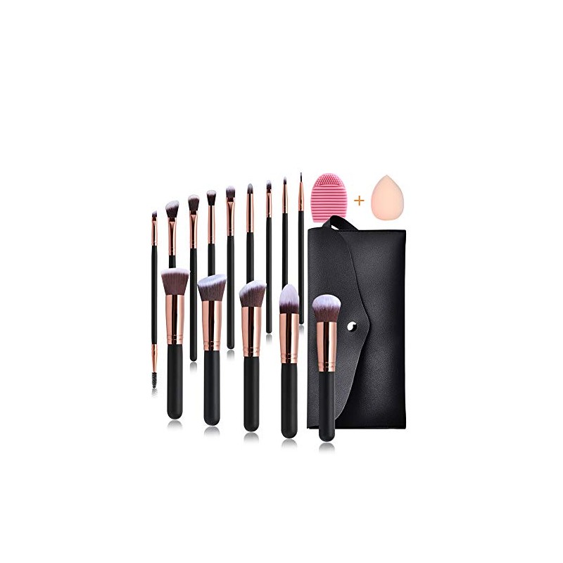 Salandens Brochas para maquillaje 16 Piezas. Brocha de cerdas sintticas prmium. Kit de brochas para sombras de ojos, aplicador de rubor y maquillaje