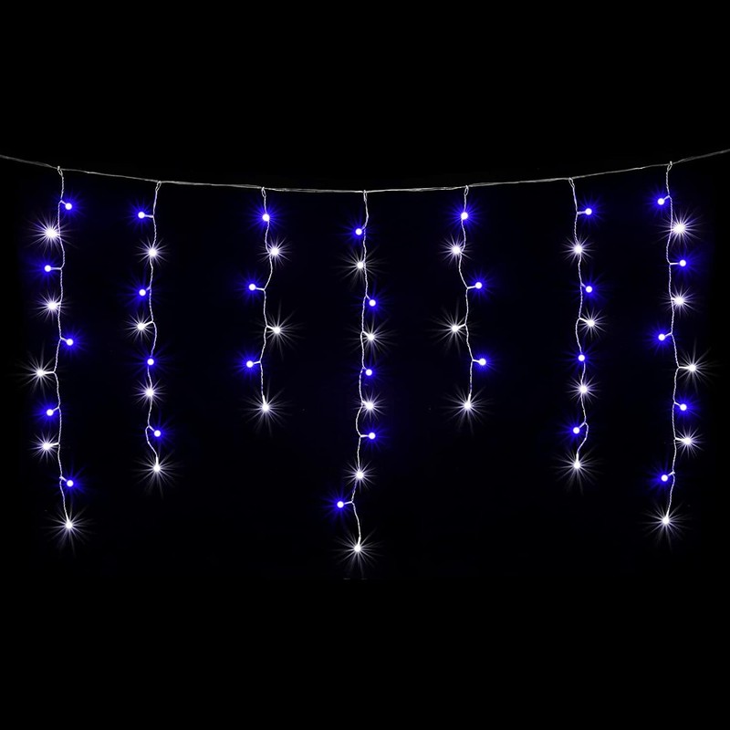 • 【SALCAR Eisregen Lichterkette】2m LED-Lichtvorhang + 3m Stromkabel, 80 LEDs; Lampenabstand: 10cm; IP44 Spritzwassergeschützt
