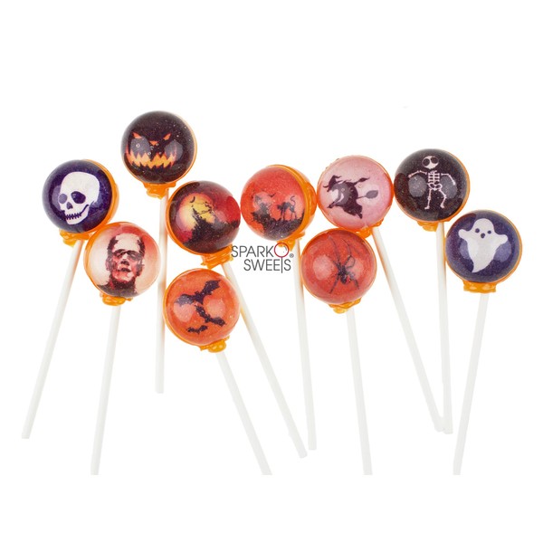 Halloween Picture Lollipops, Ghosts & Ghouls, 10 Pieces, Handcrafted in USA by Sparko Sweets, Watermelon Flavor, Perfect for Halloween Parties & Treats, 2 lbs