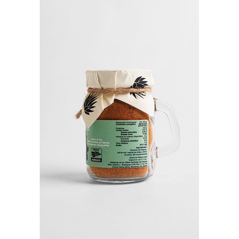 - Contiene Sal de Mar, Gusanos de Maguey y una Mezcla de Chiles.