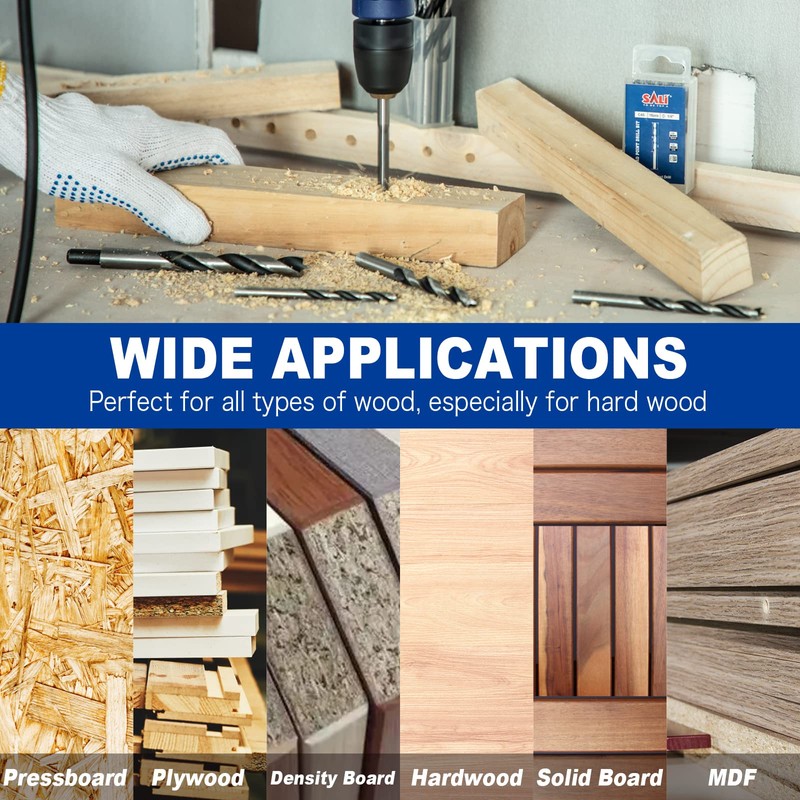 - Wide application - Perfect for soft, hard materials like wood, fiberboard, particleboard, plywood, plastic, PVC, MDF, acrylic, nylon, rubber etc. They can also be used for drilling soft metal sheets. A must-have for any woodworker.