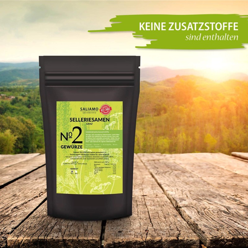 - High quality: we at Saliamo have focused on celery seed spice, which consists of small grains and has been processed to a high quality. The celery seeds are a basic spice, which is also an all-rounder and therefore should not be missing in any spice rack.