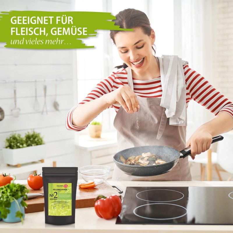- High quality: we at Saliamo have focused on celery seed spice, which consists of small grains and has been processed to a high quality. The celery seeds are a basic spice, which is also an all-rounder and therefore should not be missing in any spice rack.