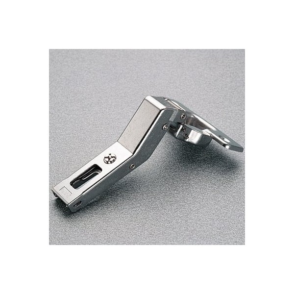 Salice Series 200 concealed self-close hinge for 45° diagonal corner cabinets. Designed for use in 45° diagonal corner cabinet applications. The cup depth is 12mm and the diameter is 35mm. Mounting options include screw-on or press-in nylon dowels. Bright nickel plated cup and arm. Mounting plates sold separately.