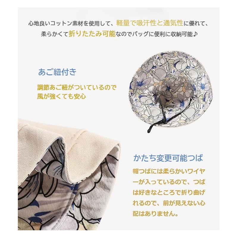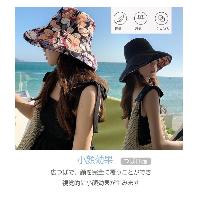 Saliwind hat01 Women's Sunscreen UV Protection, Reversible Hat, Sun Shade Hat, Summer, Drawstring Included, Cotton, Wide Brim, Small Face Effect, 22.0 - 22.8 inches (56 - 58 cm), For Traveling,