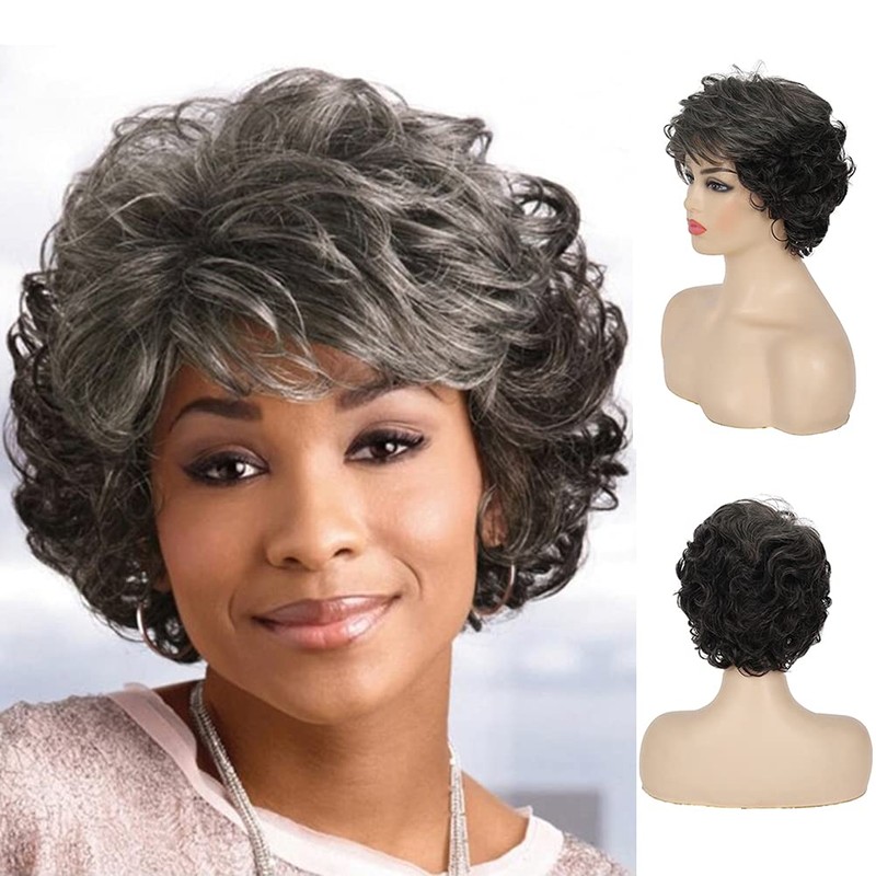 Sallcks Short Curly Grey Wigs for Women Soft Synthetic Heat Resistant Hair Replacement Full Wigs for Daily Party Use