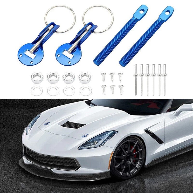 salle-autoparts Universal Alloy Mount Bonnet Hood Pin Pins Lock Latch Kit Racing Sport Blue