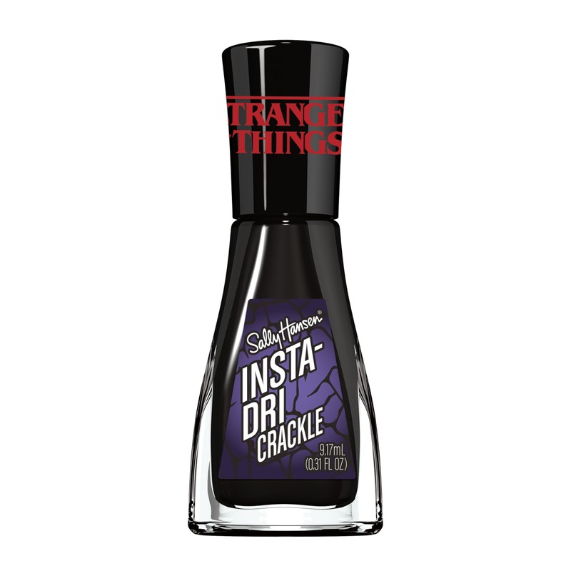 Introducing 8 Sally Hansen Insta-Dri nail polish shades & 1 Perfect Press-On design in collaboration with Netflix's Stranger Things. Inspired by the eerie Upside Down and the secrets in the town of Hawkins, this nail art collection includes 4 transforming crackle effects, 2 crèmes, and 2 glow-in-the-dark shades. These Sally Hansen nail polishes truly resemble the haunting shadows of the Upside Down, the neon glow of the 1980s, and the bold spirit of characters who dare to defy the ordinary.