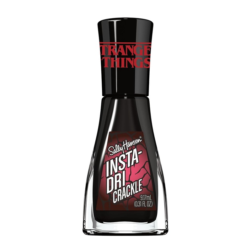 Introducing 8 Sally Hansen Insta-Dri nail polish shades & 1 Perfect Press-On design in collaboration with Netflix's Stranger Things. Inspired by the eerie Upside Down and the secrets in the town of Hawkins, this nail art collection includes 4 transforming crackle effects, 2 crèmes, and 2 glow-in-the-dark shades. These Sally Hansen nail polishes truly resemble the haunting shadows of the Upside Down, the neon glow of the 1980s, and the bold spirit of characters who dare to defy the ordinary.