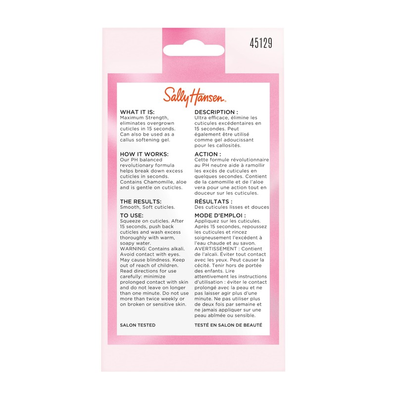 • Formula helps break down excess cuticles in seconds and contains moisturizing aloe and chamomile to help condition and soothe.