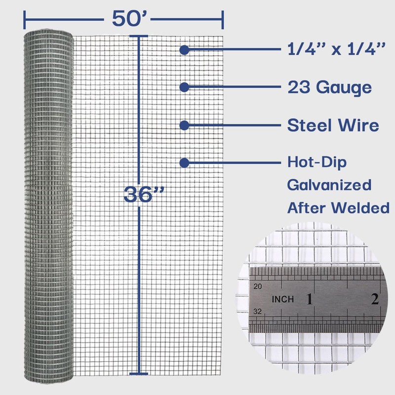 - Durable Galvanized Hardware Cloth: This 1/4-inch mesh hardware cloth roll measures 36 inches by 50 feet (23 gauge) and is hot-dipped galvanized for superior rust and corrosion resistance. Packed in a sturdy carton to ensure safe delivery and protect against damage