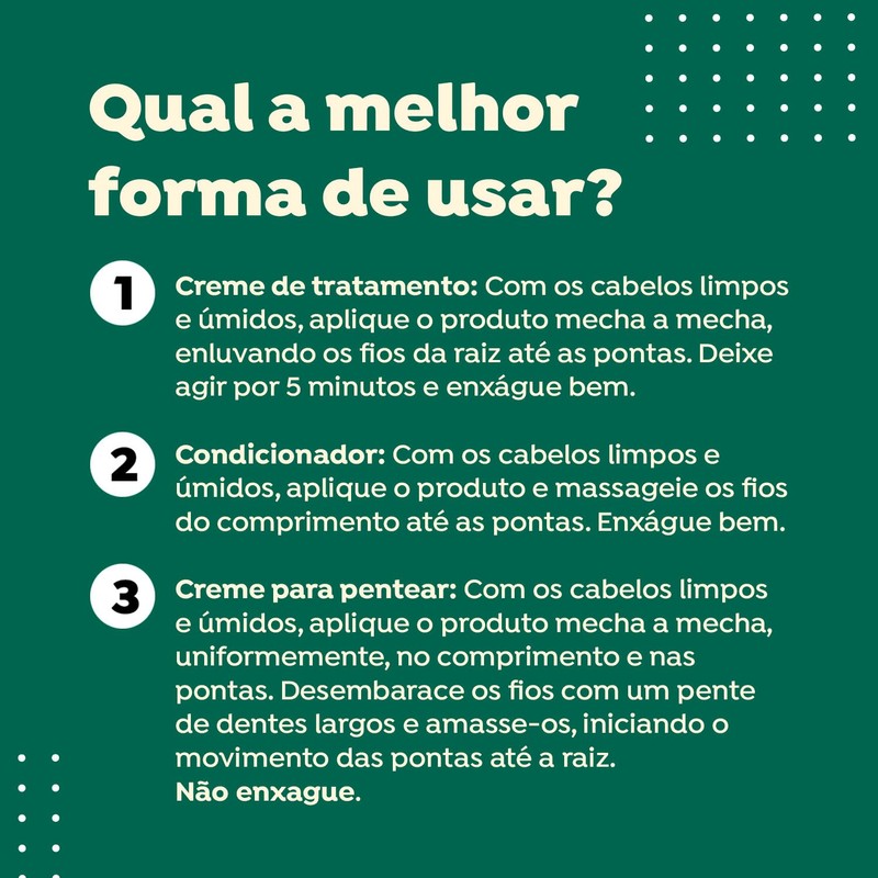 - Intensely nourishes the hair (Nutre os fios intensamente)