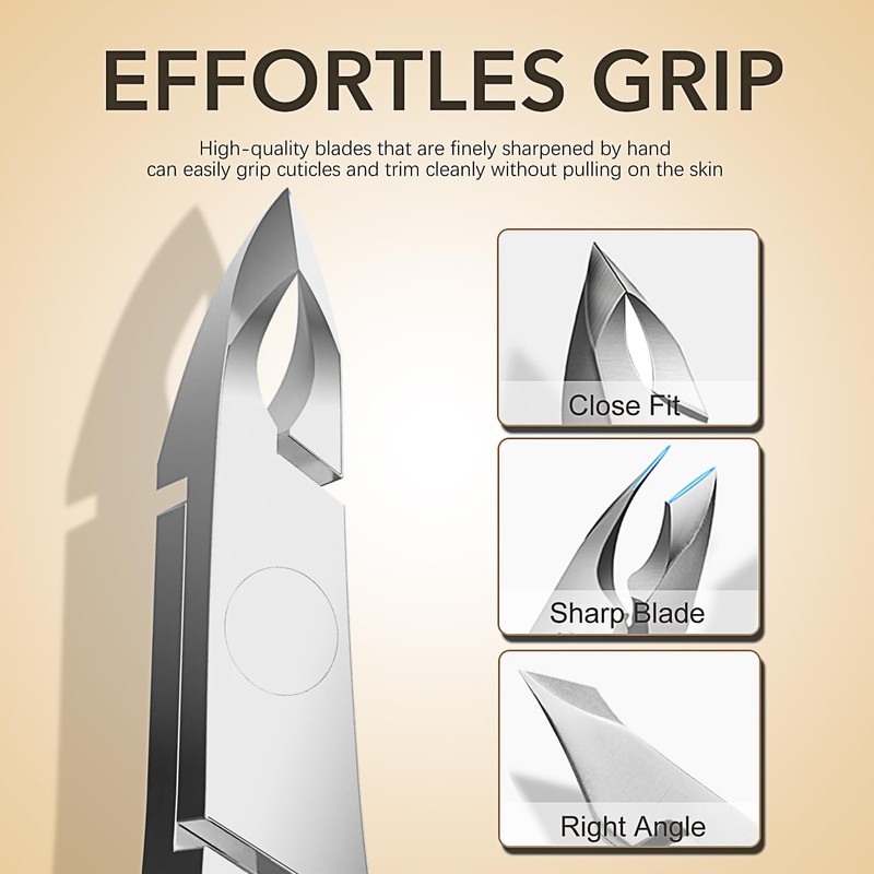- Rubber grips ensure this professional cuticle remover tools will cut where you need to whitout fear of losing control while nipping damaged cuticles. Unique Spring design has passed our elastic test.