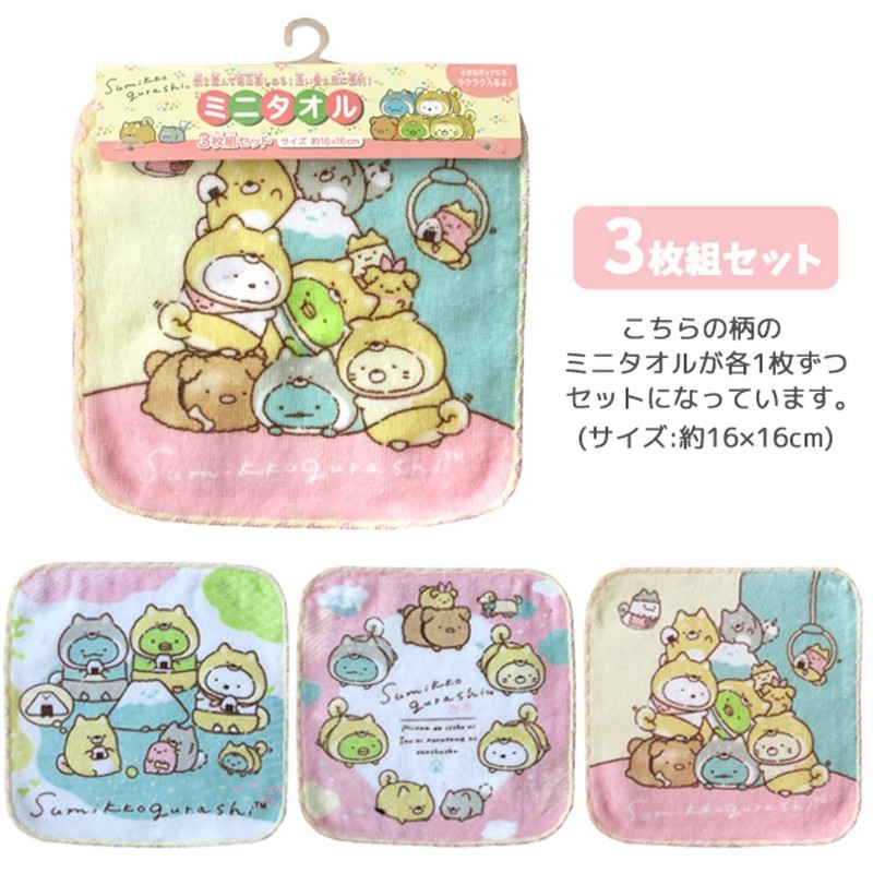 Salonge Sumikko Gurashi 15507 870740 Mini Towel, Set of 3, Petite Towel, Towel Handkerchief, Sumikko Gurashi
