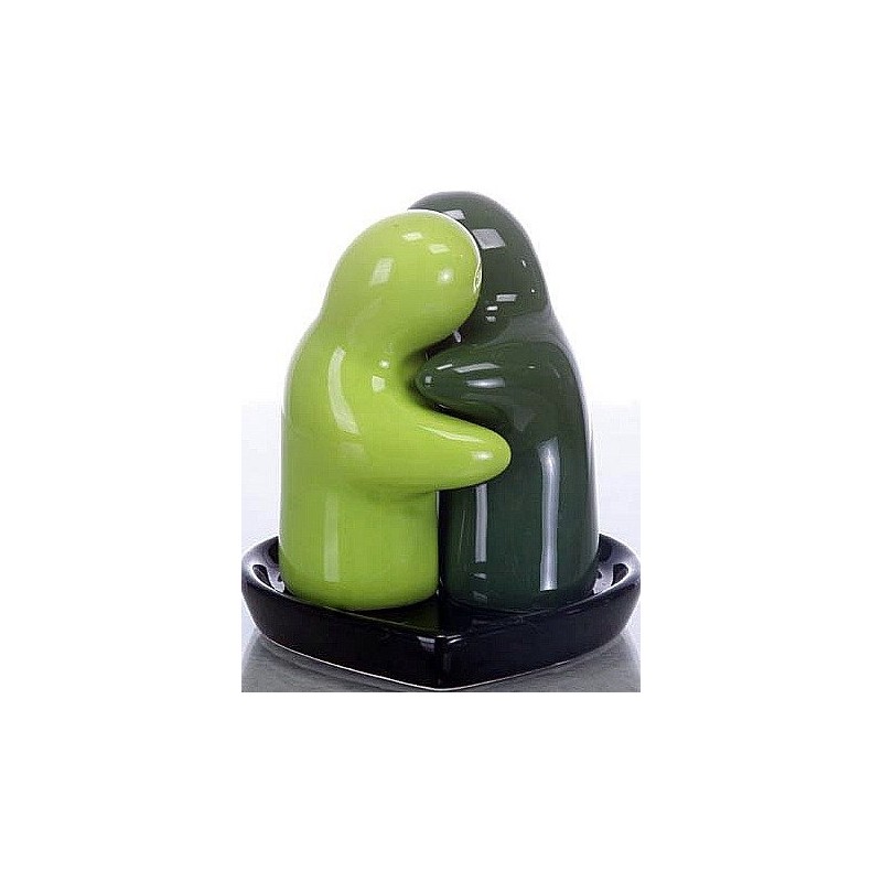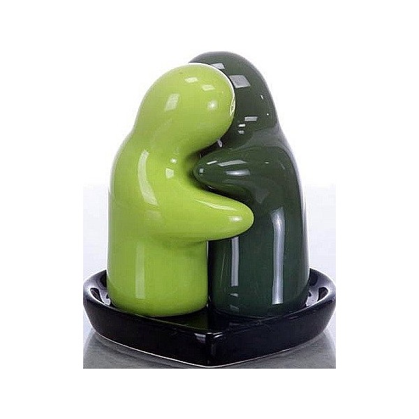 Salt and Pepper Shaker Set Ceramic Salt and Pepper Shaker Ghost Lovers (Light Green/Dark Green with Black Heart Coasters
