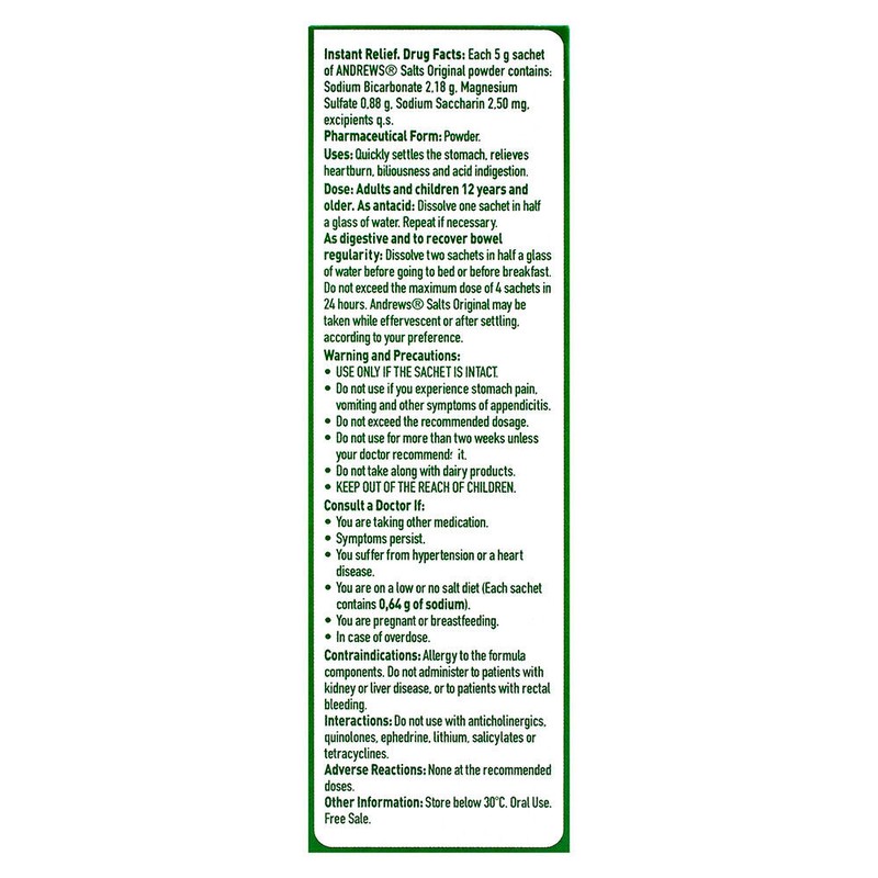 Up for sale 1 Box of Andrews Salts, sparkling salts for Upset Stomach, Heartburn, and Indigestion. With 50 sachets.