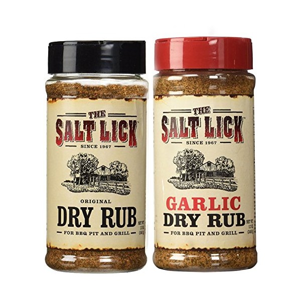 - 2 pack of the Famous Salt Lick BBQ Joint Rubs, Original and Garlic 12 oz each