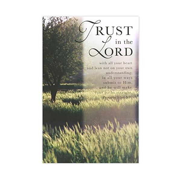 Welcome your congregation and guests with church bulletins featuring fresh artwork or a message that corresponds with your sermon series. The beautiful bulletins are decorated with a scene from nature featuring wild grass, a tree, and a mountain side. The scripture message reads: Trust in the Lord with all your heart and lean not on your own understanding; in all your ways submit to Him, and he will make your paths straight. Proverbs 3:5-6 NIV. Church bulletins arrive in flat, shrink wrapped packages of 100 and measure 8 1/2 x 11 inches to fit your printer or copier. They are made of sturdy, 100 gram writing paper and measure 8 1/2 x 5 1/2 when folded.