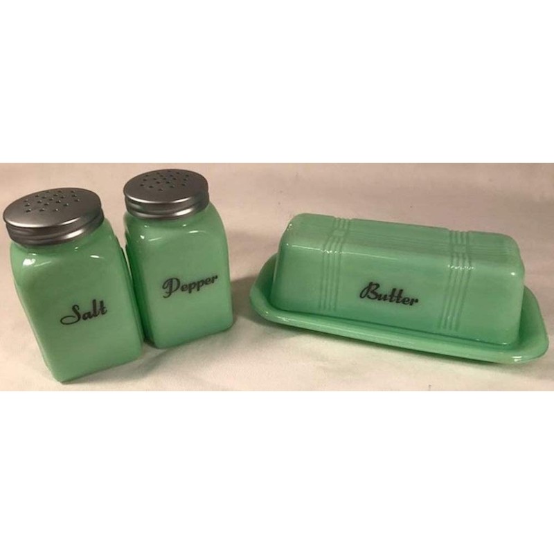 Salt n Pepper Shaker Set and Butterdish - Table Set - (Jadeite)