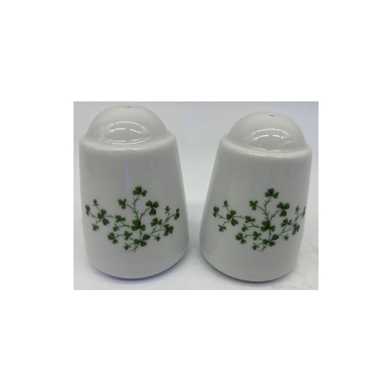 - Salt & Pepper Shaker Set Tapered - White Porcelain w/ St Patricks Day Shamrocks