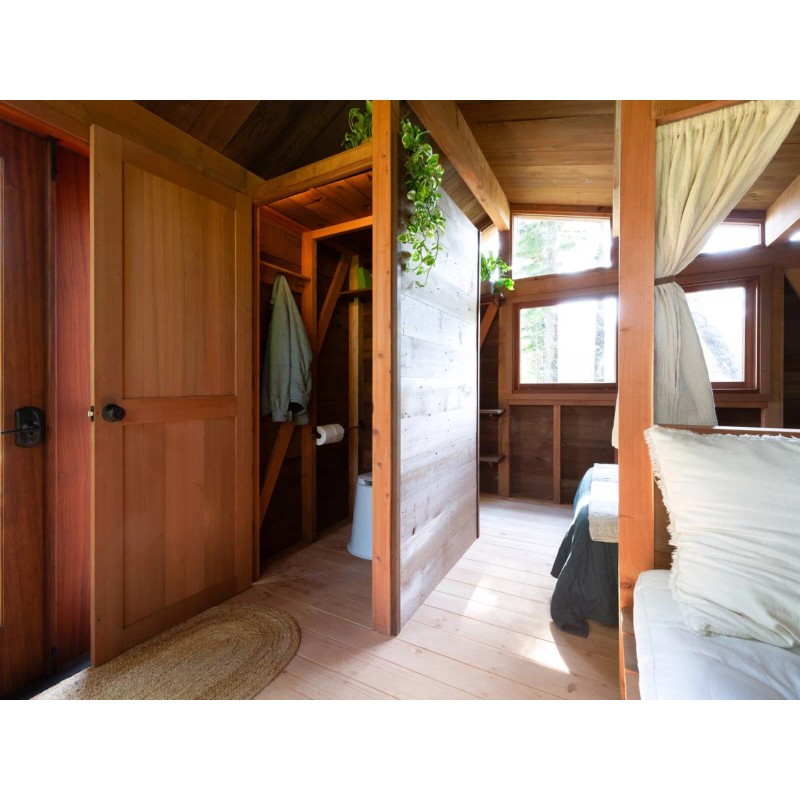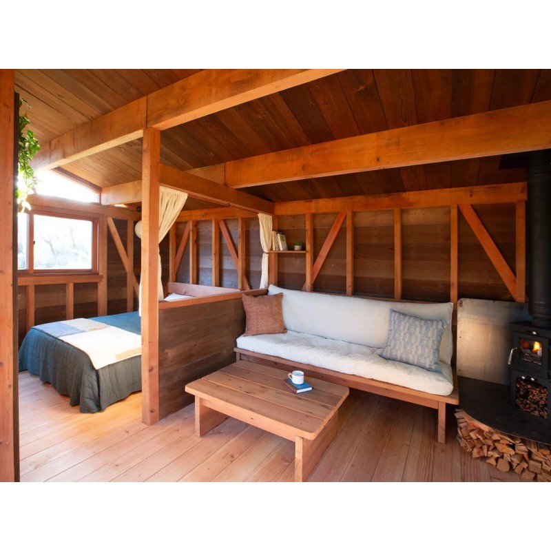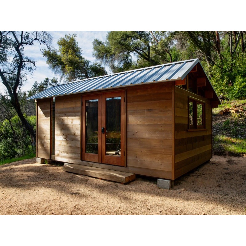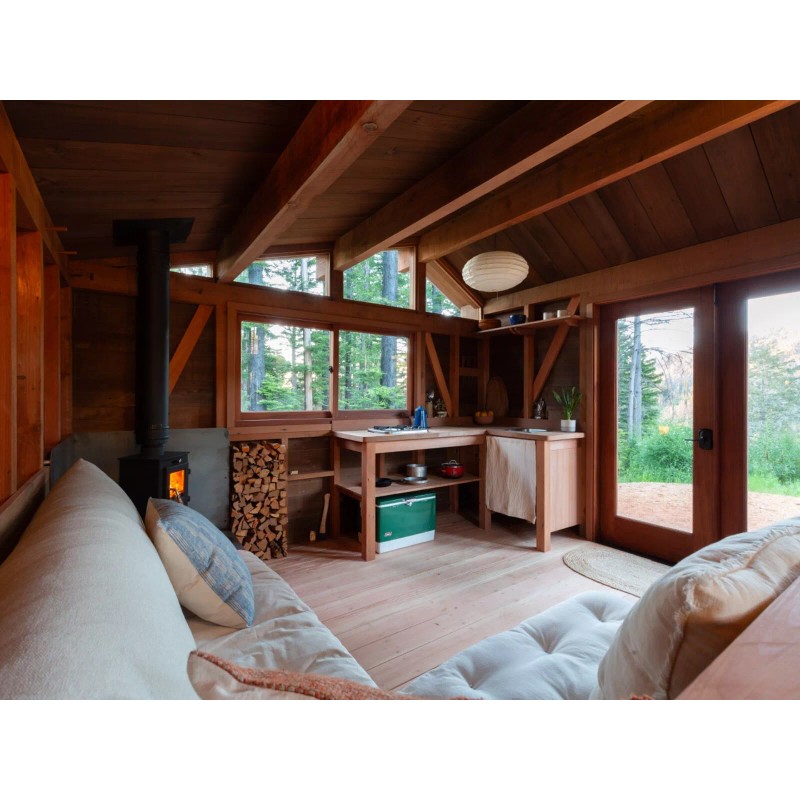 This Dwell-featured simple cabin showcases exposed framing and post and beam construction. Replicate it, or a version of it, with this printable PDF plan and fully illustrated build guide. Cabin features a kitchen, one bed, and one bath and is just under 200 square feet, meaning it won't require a permit in many areas. The structure can also be used as an Accessory Dwelling Unit, office, or an exceedingly nice utility shed.