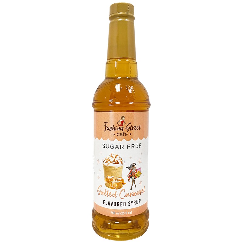 Fashion Street Cafe Sugar Free Salted Caramel Coffee Syrup - Zero Sugar Syrup for Drinks, 25 fl oz