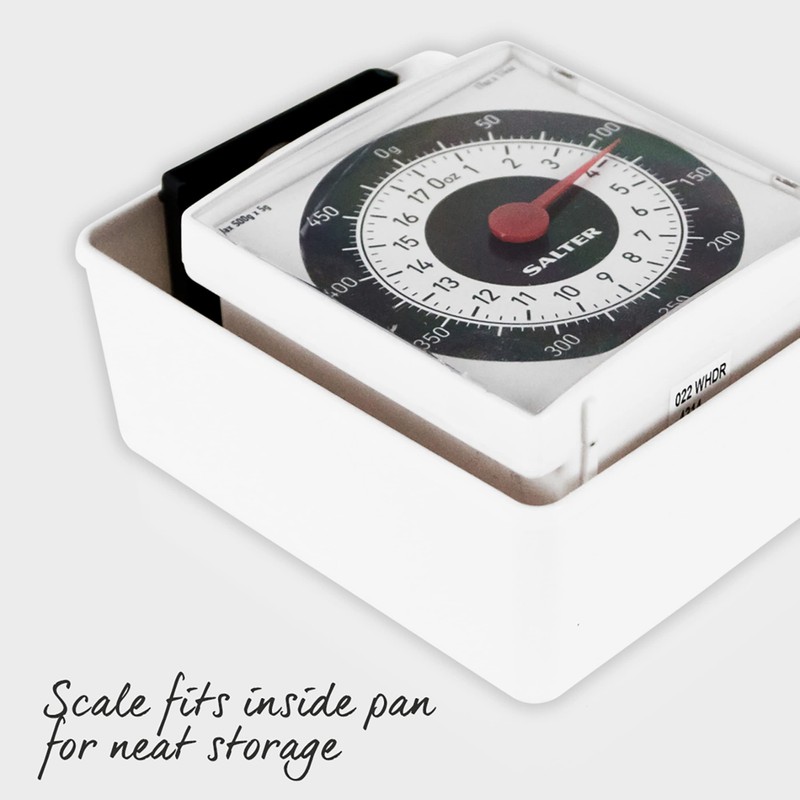Salter 022 WHDR Mechanische Küchenwaage - Analog Waage Mit Schussel, Max 500g, Messen in 5g Fur Präzise Portionierung, Batterielos, Gut Ablesbare, Kompakt Waage Kann In Schüssel Aufbewahrt Werden
