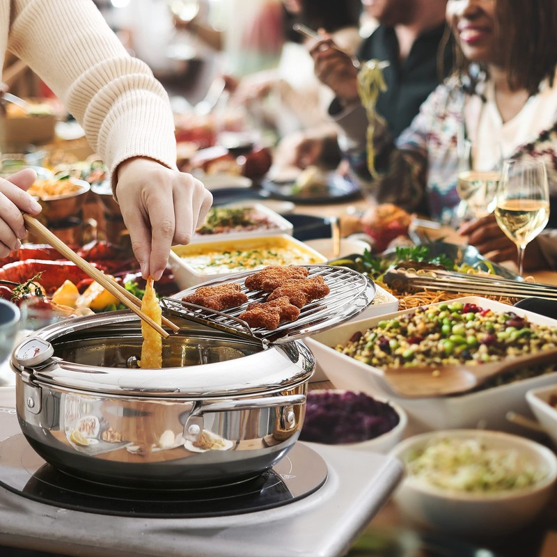 - SPACIOUS SIZE for LARGE FAMILIES ; Tempura frying pot with 11" Dia and 4.4 QT (4.2L) Vol., Perfect for a family of 4-6 people, Good volume for frying tempura, fish and chips, chicken, and meat ball