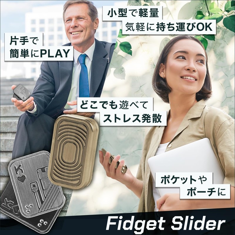 - HIGH QUALITY METAL FIDGET SLIDER TO RELIEVE STRESS This metal fidget slider is made of high quality stainless steel material which is precision machined for durability. Easy to operate at your fingertips, crisp metal sound and magnetic feedback are great for stress relief and focus. Easy one-handed play makes it a great choice for fidget toys for adults and relaxing at work or school