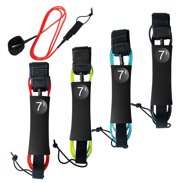 【Comfortable Ankle Cuffs to Reduce Stress on the Ankles】 The cuffs on the ankles are elastic and soft bands for comfortable wear. Wide ankle cuff disperses pressure on the ankle when pulled to reduce fatigue during long surfing Product specifications: Cord length: 7 feet, Cord kimono 0.3 inches (7 mm); Color variations: Red, Green, Blue, Black.