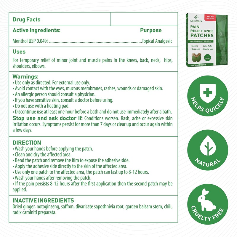- Long-lasting: - For penetrating, mess-free & targeted relief, apply the Knee pain patch in specific areas. Our herbal pain relief patches maximum strength offers temporary pain relief for up to 8 hours. Saluvera wormwood patch for all ages