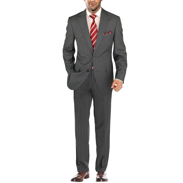 Salvatore Exte Men's Two Button 2 Piece Suit Jacket Flat Front Pants Striped (42 Regular US / 52R EU/W 36", Charcoal Gray)