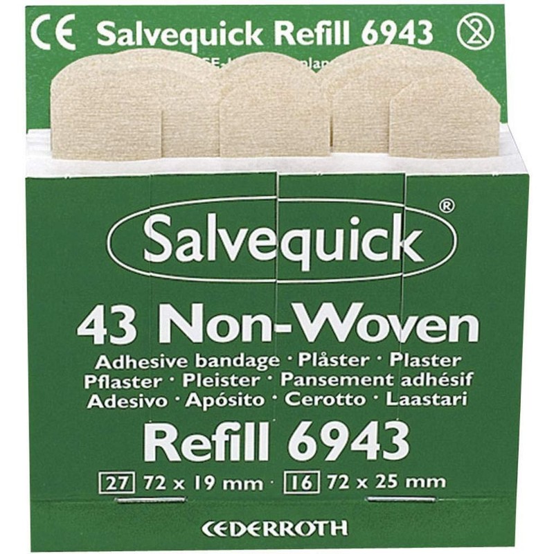 - Salvequick Plasters and Plasters are a complete and easy to use system. The plasters are always in place, ready to use. Refills are locked in the dispensers to avoid shrinkage. The dispensers are quickly and easily refilled with a special key.