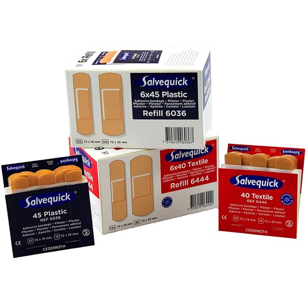 Salvequick® - Refill Inserts, Double Pack FLEXEO Economy Set 6xREF6036 Plastic and 6xREF6444 Textile (Including Note on Plaster Application)