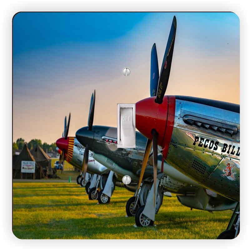 Sam Sandor - Ircraft Airplane Mustang War Plane -Light Switch Plate Covers - Single Toggle Switch Plates - Single Toggle Cover