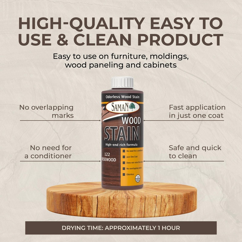 SamaN Interior Water Based Wood Stain - Natural Stain for Furniture, Moldings, Wood Paneling, Cabinets (Rosewood TEW-122-12, 12 oz)