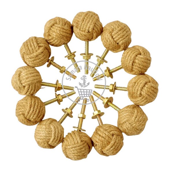 Samara Nautical 12 Knotty Door knobs - Nautical Drawer pulls - Jute Rope Drawer pulls S