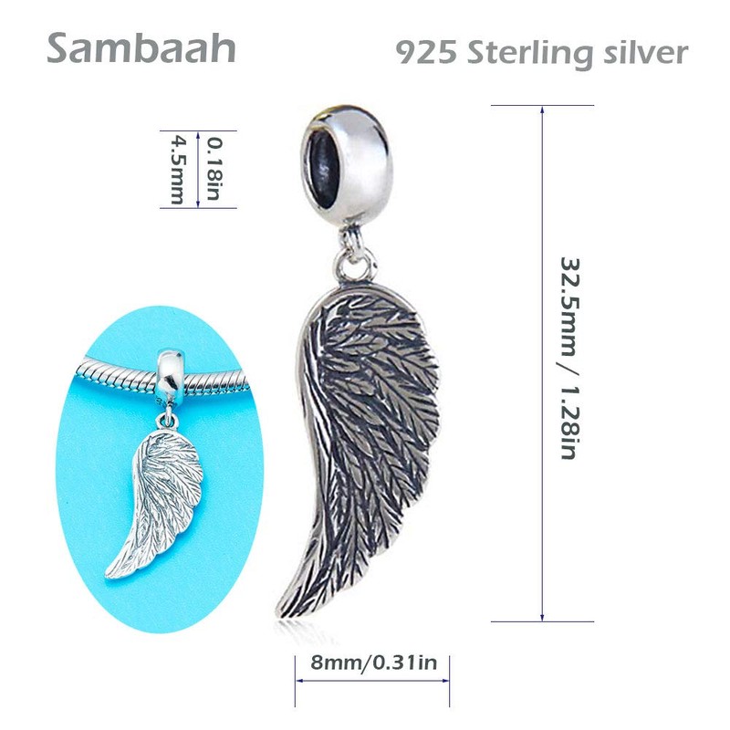 Sambaah Angel Wing Charm 925 Sterling Silver Wing Pendant Lucky Charm Lucky Bracelets Charm