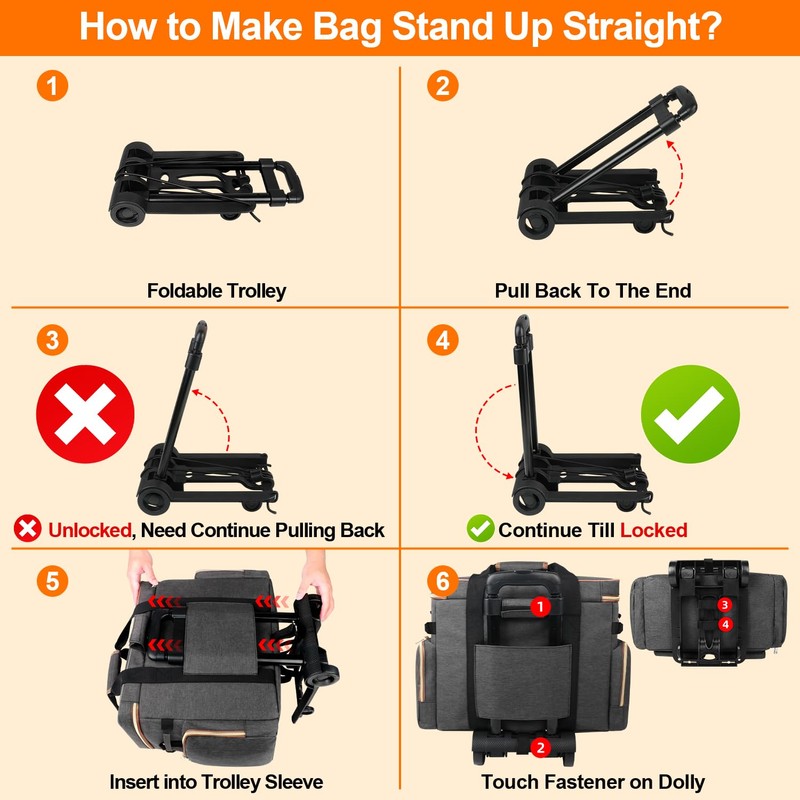 - Detachable Trolley with 2 Elastic RopesThis rolling teacher tote bag is equipped with a foldable dolly. Its telescopic handle has three adjustable lengths (17.1/28/37.4 inch), which can meet different needs of height. 2 removable bungee cords and 2 silent wheels can add security.