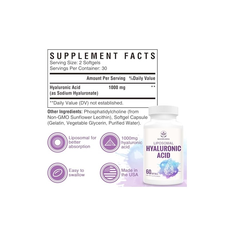 - Natural Ingredients: Sambugra liposomal hyaluronic acid supplements are soy-free, gluten-free, and made with non-GMO ingredients. Produced in the USA, they undergo rigorous testing to ensure a superior experience