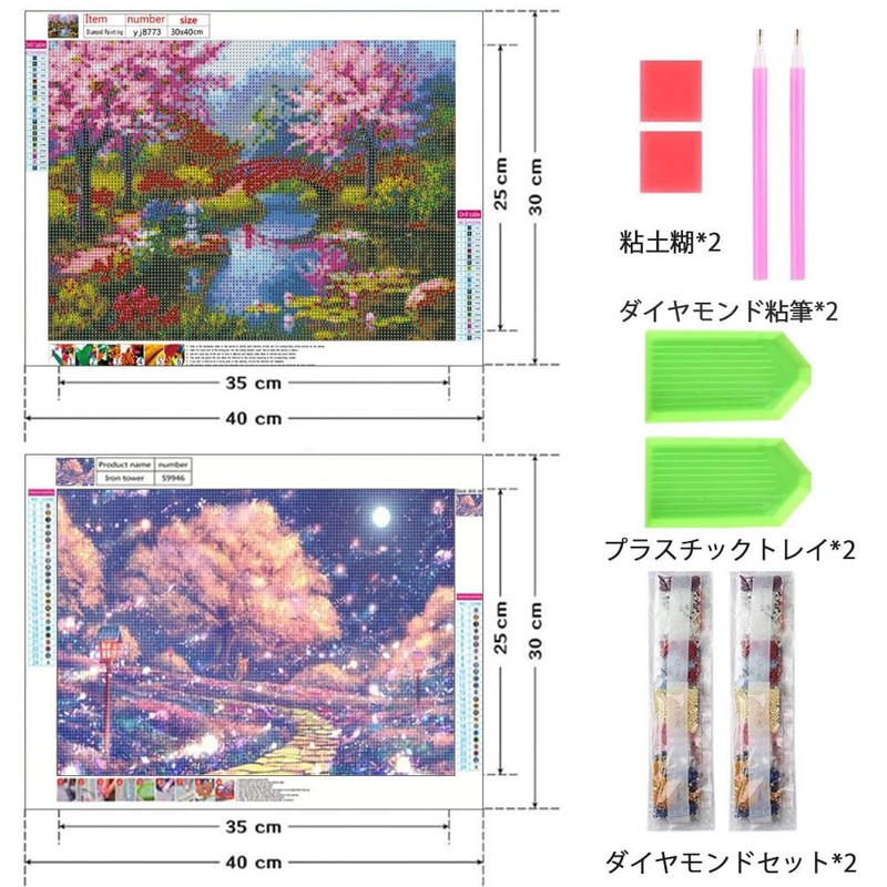 - Set Contents: Diamond painting set 2 sets (not including frame), diamond set + diamond adhesive brushes, plastic tray, oil painting cloth, and clay glue. Oil painting cloth size:about 30*40cm,Operation size:about 25cm*35cm