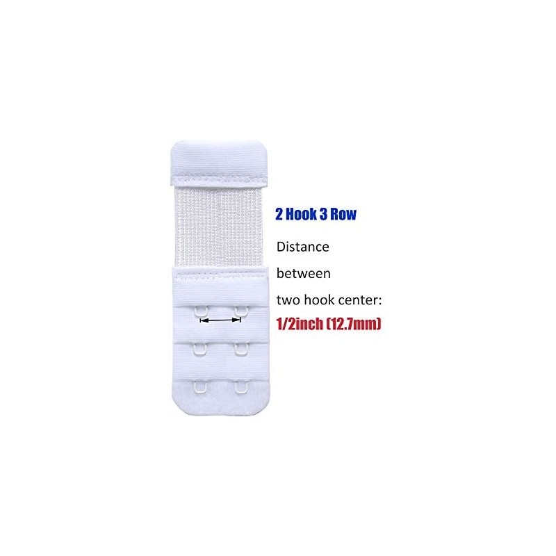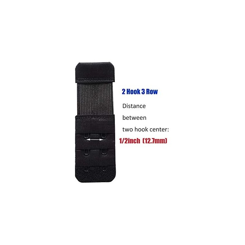 - {2 hook bra extender size(L x W)}: 3.7inch x 1.18inch(9.4cm x3cm), with 1/2 inch (1.27cm) hook center spacing. This bra extender has 3 rows of position hooks, 3 rows by 2 hooks enables you to adjust your bras easily.