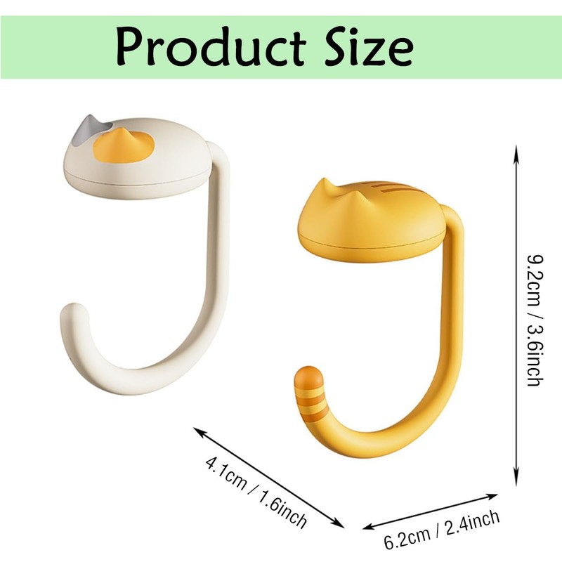 - 【Compact Size】🐱 Cute and funny cat appearance, and the L-shape long tail hook can prevent items from falling effectively. Size about 92 x 62 x 41 mm / 3.6 x 2.4 x 1.6 inch. Useful and stable, it can bear up to 5kg.