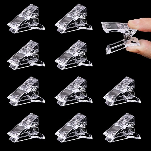Samkos Nail Tips Clips, Nail Fixing Clips, Plastic, UV Gel Builder Tool, For Gel Nails, Transparent, Set of 10