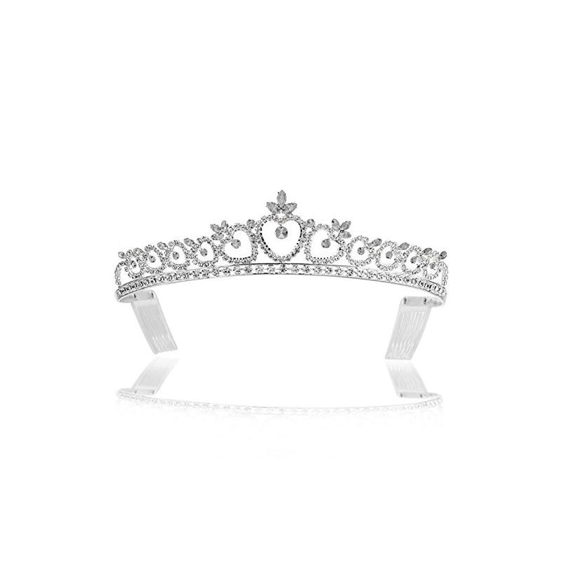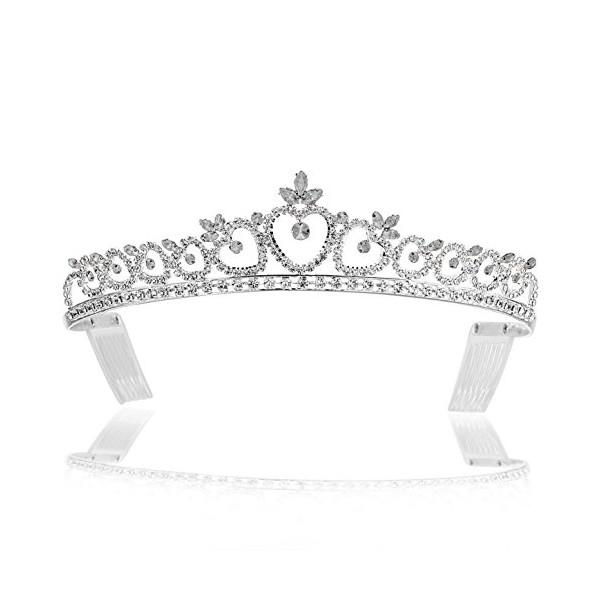 SAMKY Hearts Design Rhinestone Crystal Tiara Crown - Silver Plated Clear Crys...